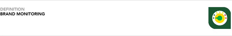 Brand monitoring is the process by which the performance, effectiveness or success of a brand can be monitored over time.
